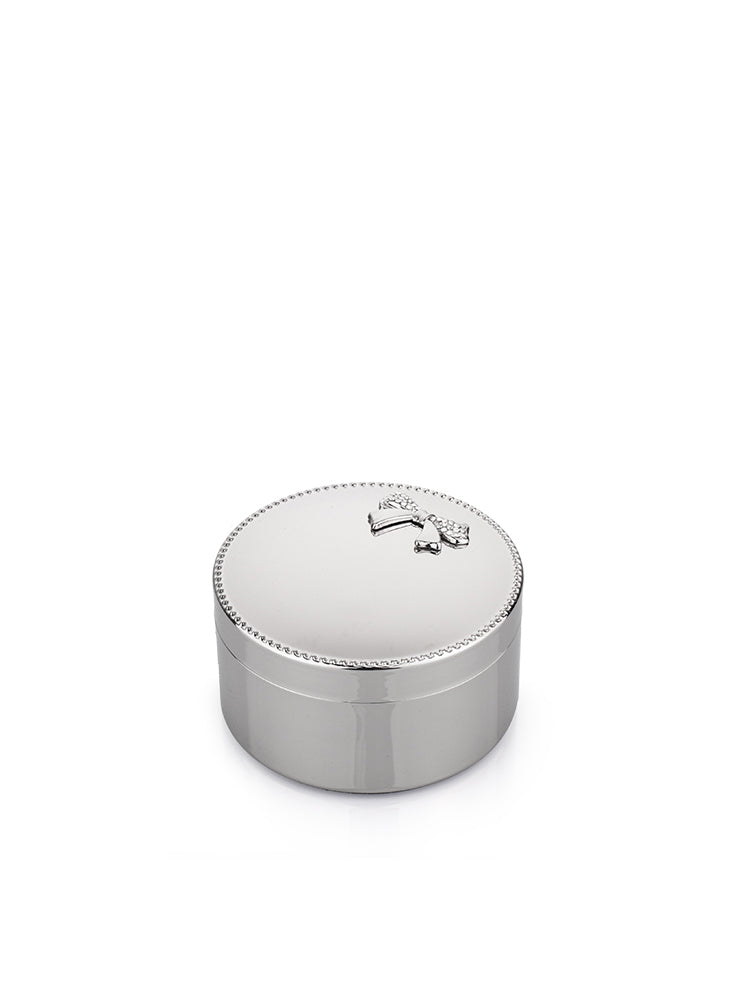 The interior is lined with soft velvet to ensure your treasures remain protected and scratch-free. The intricate beaded edge around the lid enhances its timeless appeal, making it a stylish addition to any vanity or dresser.
