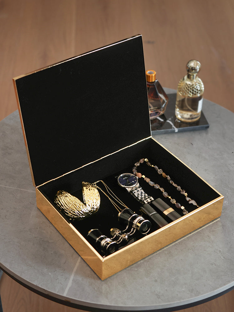 This LEON Trinket Box is a stylish and practical addition to any room. Measuring 25 x 20 x 6.7 cm, it offers ample space while maintaining a sleek, elegant profile. The interior is lined with plush black velvet, providing a soft cushion to protect your jewelry, mementos, or heirlooms from scratches.