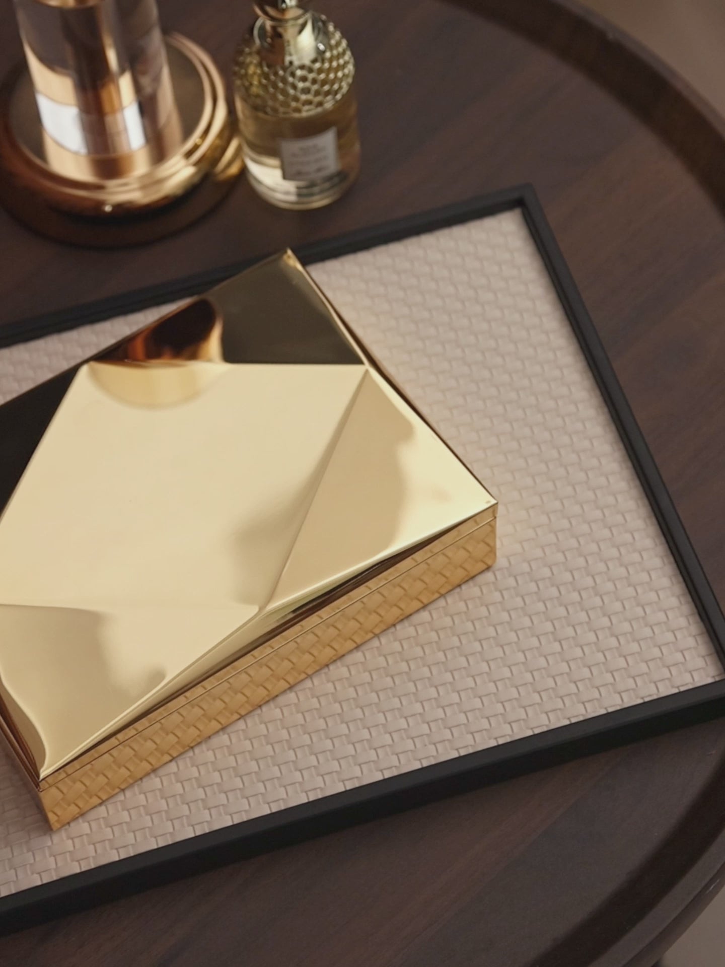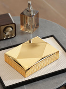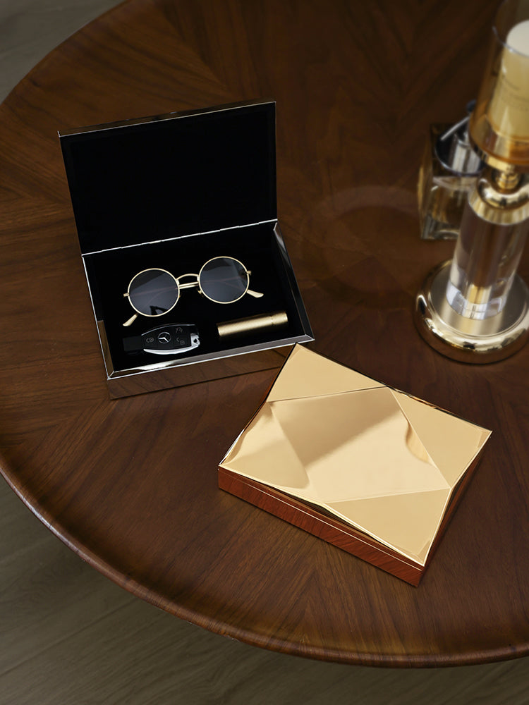 This box boasts a unique geometric design on its lid, adding a touch of contemporary elegance to any space. The interior features a luxurious black velvet lining, ensuring your items are protected from scratches and dust.