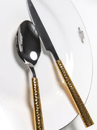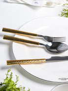 Elevate your dining experience with our Modern Hammered Cutlery Set. Made with high-quality stainless steel, this set adds a touch of sophistication to any meal. The unique hammered design brings a modern twist to traditional cutlery, making it a standout addition to your table. Upgrade your dining game now!