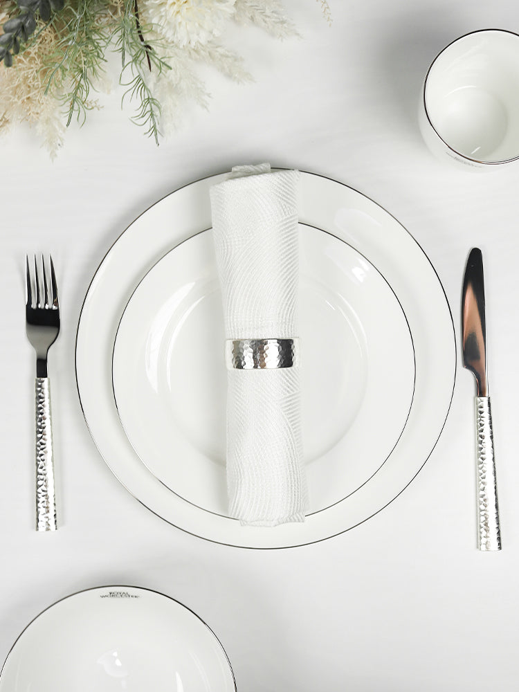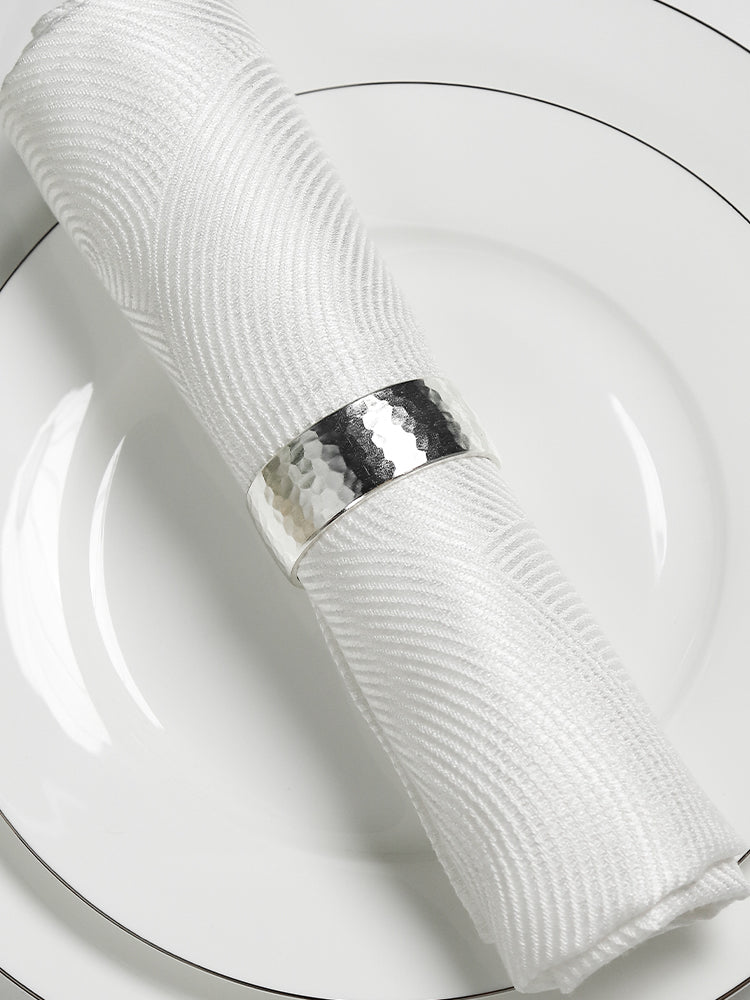 Elevate your dining experience with our Modern Hammered Napkin Ring I. Elegant and versatile, it adds a touch of sophistication to any table setting. Made with premium quality materials, it ensures durability and longevity. Upgrade your dining decor with this must-have accessory.