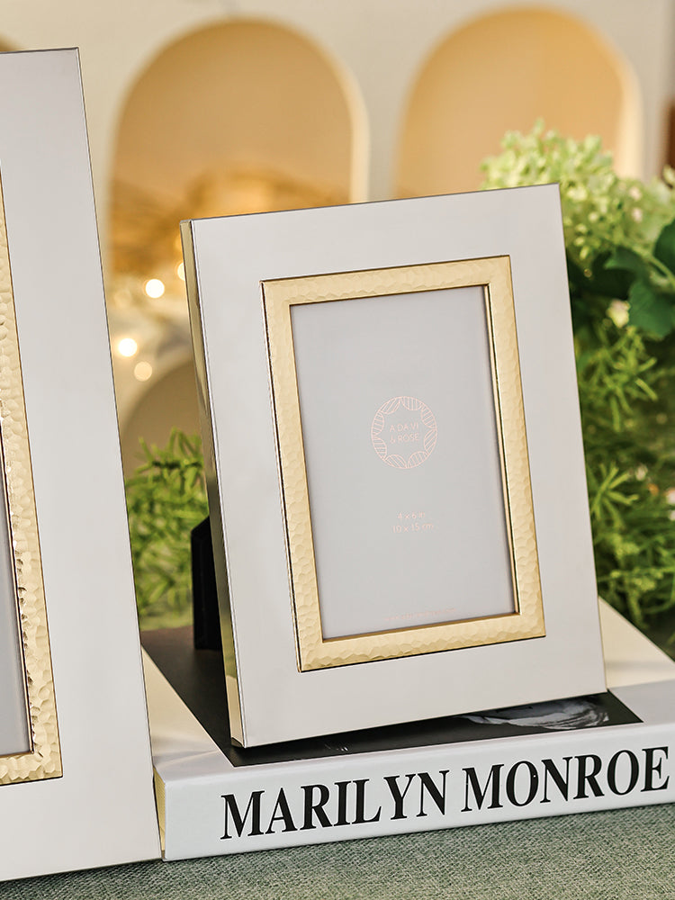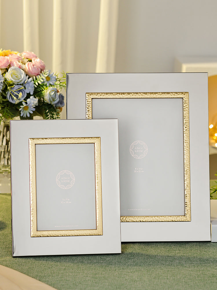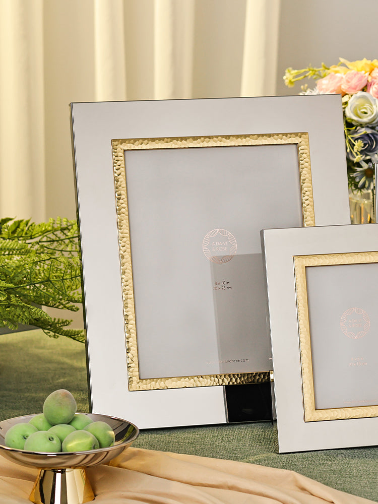 Display your most treasured memories in style with our Wide Hammered Photo Frame. The elegant hammered design adds a touch of sophistication to any room, while the wide frame allows for a larger, more impactful display. Preserve your special moments and add a touch of luxury to your home decor.