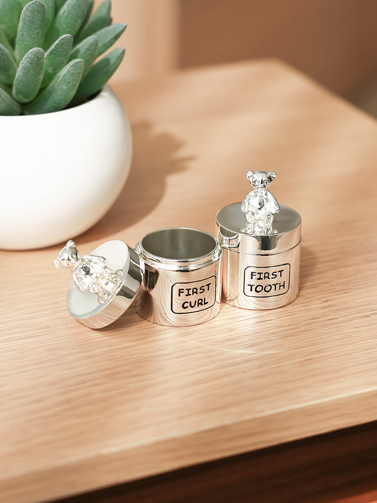 Celebrate your little one's milestones with our Teddy Bear 1st Tooth & Curl Box. Made of durable material, this adorable box will keep their first tooth and curl safe for years to come. Perfect for preserving precious memories and passing down through generations. Ideal for babies and kids.